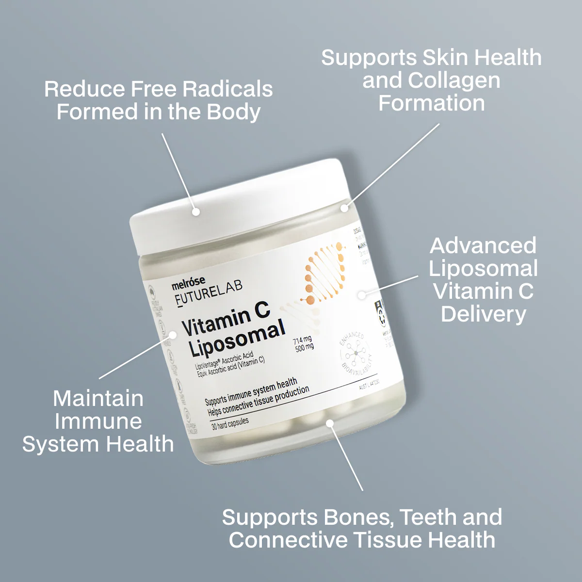 This premium high-absorption vitamin C supplement is your daily support for immune system and skin health. Each capsule delivers 500 mg of ascorbic acid using LipoVantage® liposomal technology, designed to protect vitamin C during digestion and support improved absorption. By supporting immune function, skin health and connective tissue, this formula helps maintain overall wellbeing as you age.