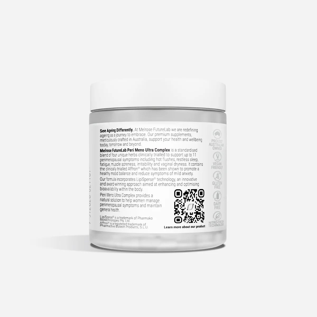 FutureLab Peri Meno Ultra Complex is a premium blend of four standardised herbal extracts, clinically trialled to support up to 11 common menopausal symptoms*, including hot flushes, restless sleep, fatigue, irritability, muscle soreness and vaginal dryness.